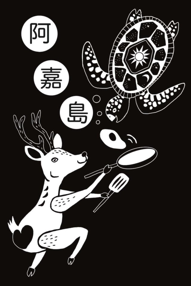 (掲載準備中) 館長あやたべデザインのケラマ鹿と亀の共演のTシャツ。